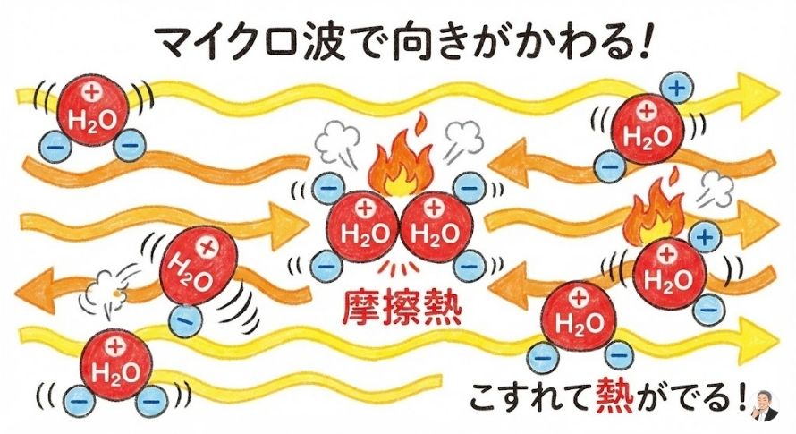 そこでマイクロ波が来ると、水分子は