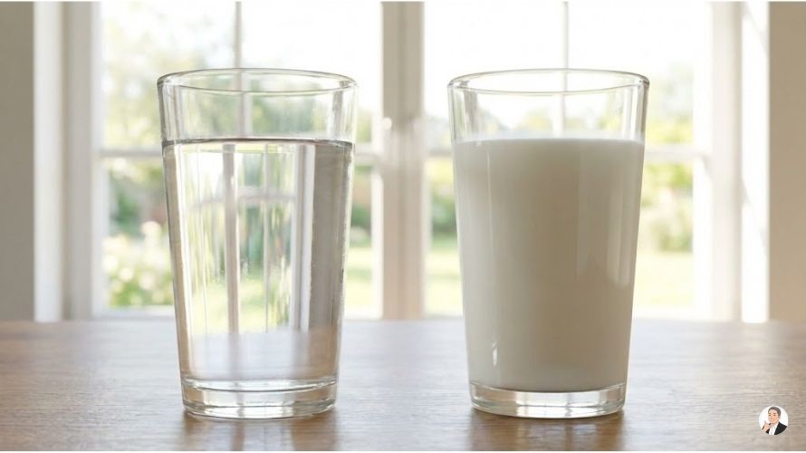水と牛乳を使って、“透明”と“白”のちがいを観察しよう。
